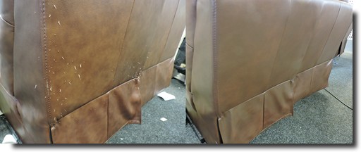 Leather Repairs and restoration services provided to damage such as rips, holes, worn or cracked surfaces to sun faded leather, and colour matched panel replacement should it be beyond repair.